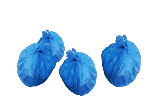 Blue plastic garbage bag, isolated on white, top view, clipping path