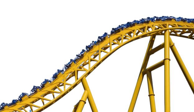 Roller coaster riding on a winding track isolated PNG with Transparent Background