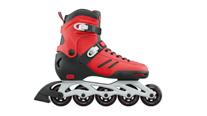 Colorful inline skate boot with strap buckles on transparent background