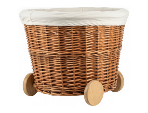 Large beige plastic rolling trash bin with lid and wheels isolated on white background, perfect for waste disposal and recycling