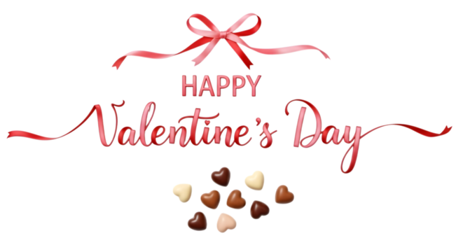 Sparkling Valentine’s Day Gold Lettering with Festive Ribbons PNG
