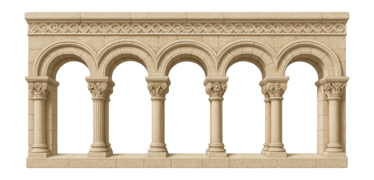 Isolated ornate Romanesque arcade of arches, classical architecture, architectural design