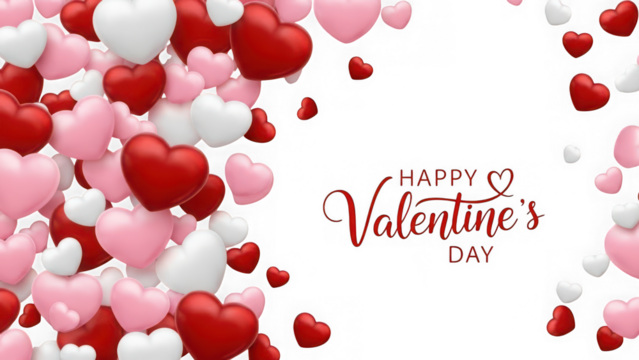 Heart Balloons for Valentine's Day: A cluster of glossy red and pink heart-shaped balloons floats against a clean background, perfect for romantic occasions or Valentine's Day greetings.