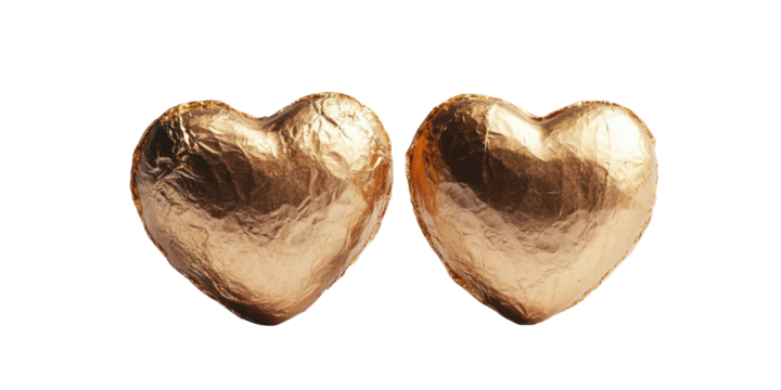 Golden hearts valentine's day decorations isolated on transparent background
