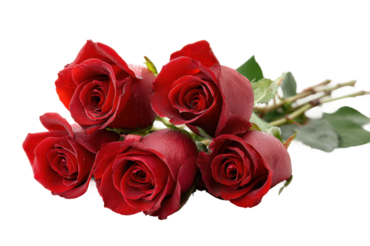 Romantic gesture red roses bouquet floral arrangement studio close-up. Isolated on transparent background, png.