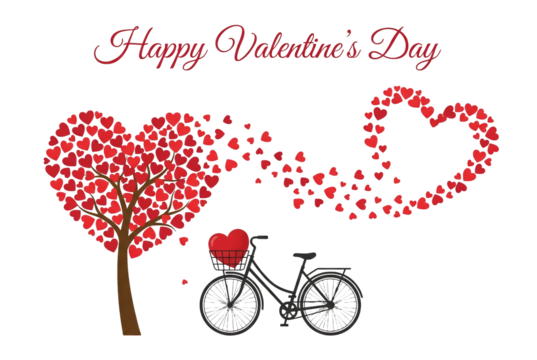 Floating red and pink hearts illustration on transparent background