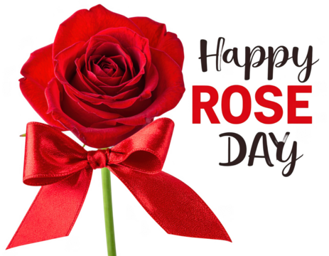 'happy rose day' text and Red rose with ribbon isolated PNG