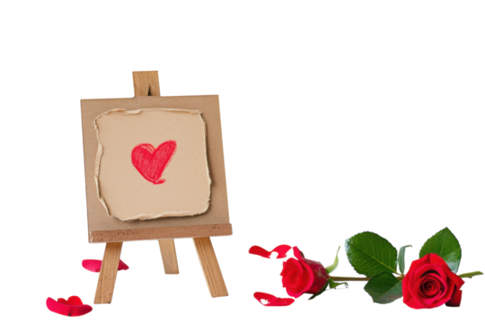 Empty rusty gradient frame adorned with romantic red roses, transparent background