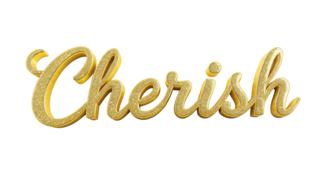 Cherish gold sparkling 3d lettering text