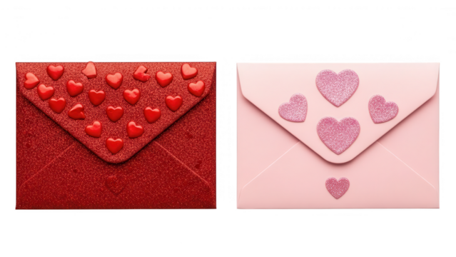 Two decorative envelopes adorned with small hearts a romantic correspondence theme