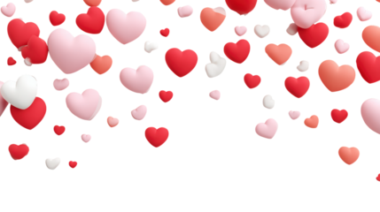 Red and pink heart border on transparent background