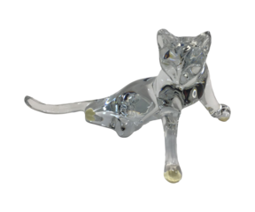 Transparent stone sculpture featuring girl with puppies