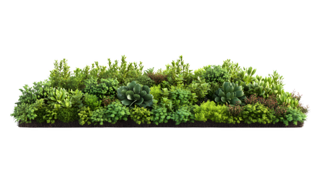 A realistic rendering of a section of a living roof with sedum plants, isolated on Transparent background.