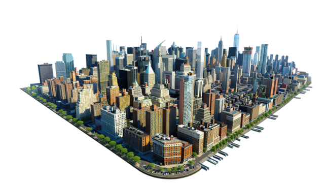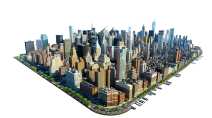 Transparent 3d cityscape model design on isolated background
