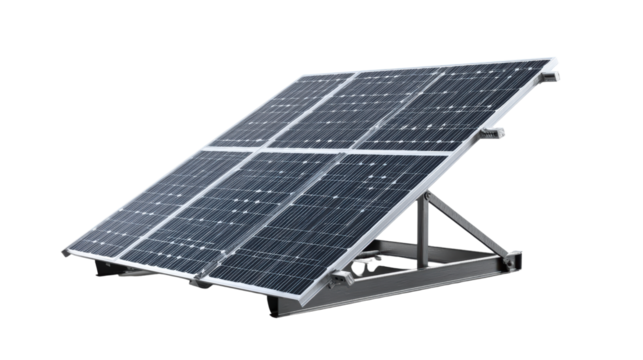 Solar panel generating clean electricity from sunlight, representing renewable energy and sustainable power source on transparent background