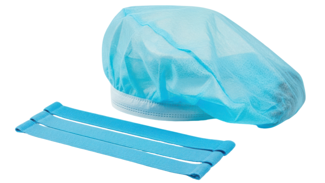 Blue disposable bouffant cap and shoe covers isolated on transparent background