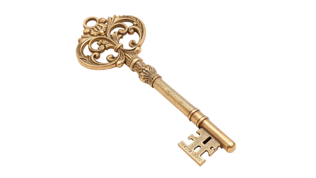 3d rendered silver key inserted with red house keychain isolated on transparent background