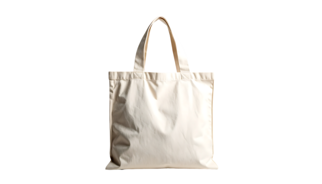 Cream-colored, rectangular cotton tote bag with short, sturdy handles; simple, unadorned design
