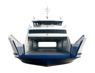 Passenger ferry with side-loading ramps and a roomy vehicle deck.