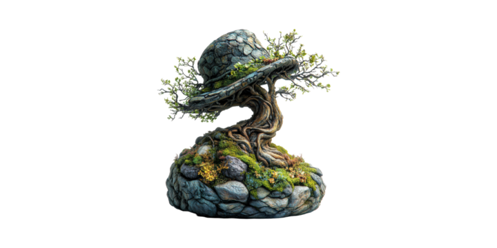 Wooden bookshelf shaped like a tree holding books with transparent background