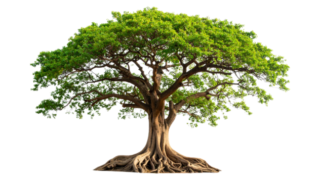 A fruit tree with visible roots, fully isolated and centered on a Tranparent background, PNG file
