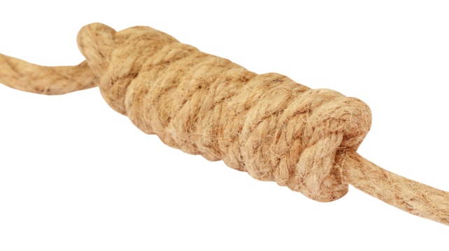 A thick beige rope tied in a secure knot on a transparent background.