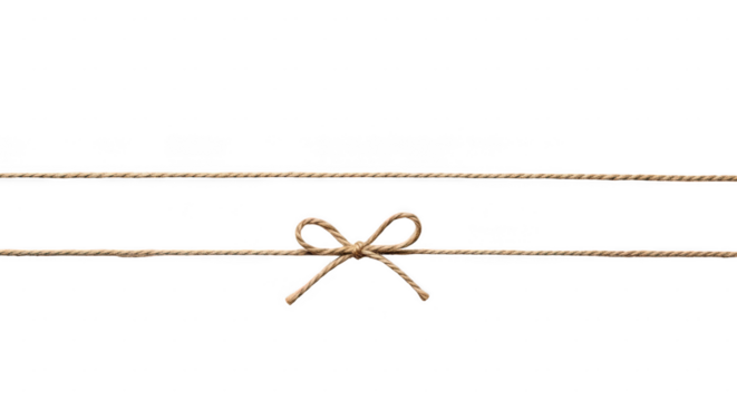 Rustic twine bow tied on a string isolated on transparent background