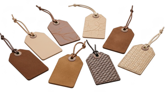 Brown leather tag with rope isolated on transparent background, perfect for adding your own text or design to create a unique and stylish look