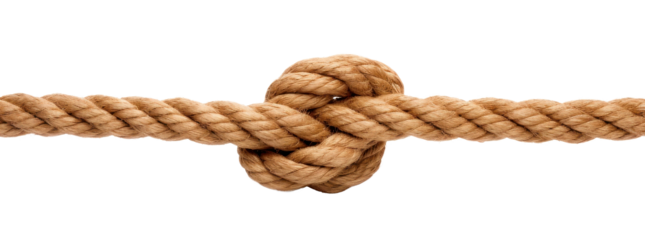 A rope with a heart-shaped knot tied neatly, isolated on a transparent background