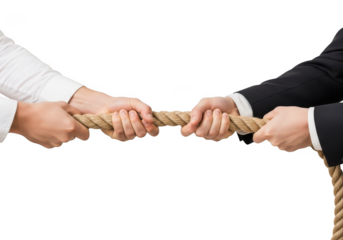 Two teams locked in intense tug of war showcasing business competition and conflict resolution strategies transparent background