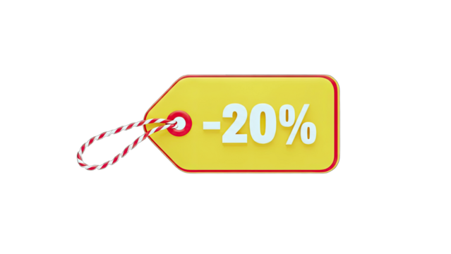 Discount Tag Showing -20% Off on White Background
