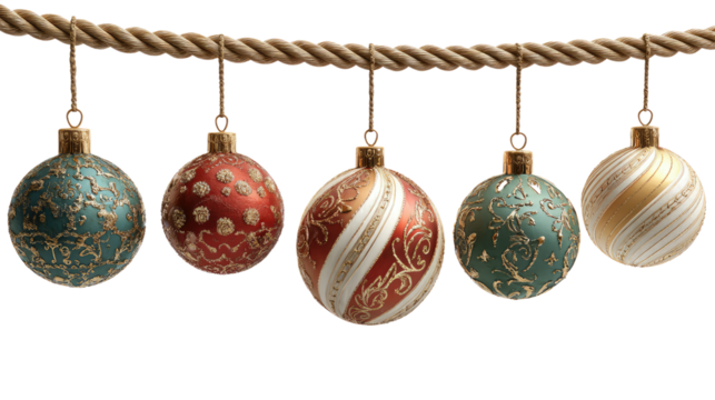 Christmas Ornaments Hanging on Rope isolated on transparent background Remove png, Clipping Path, pen tool