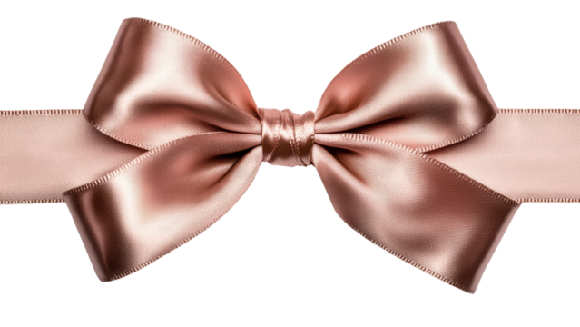 Pink bow ribbon band satin rose gold color stripe fabric (PNG isolated on transparent background) for Valentine's day holiday gift box, greeting card banner, present wrap design decoration ornament