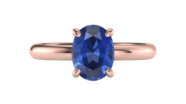 Blue gemstone ring on rose gold band jewelry isolated on a transparent background