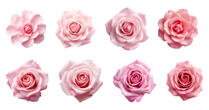 8 variation of pink roses isolated on transparent background, pastel colors, png file, cut-out, clipping path, floral, flowers petals, petal,