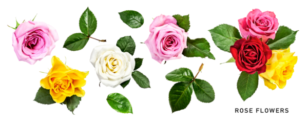 Yellow rose flowers isolated on Png transparent background.