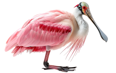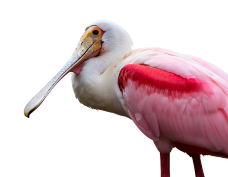 Roseate Spoonbill Bird Standing Tall on Transparent Backdrop Displaying Vibrant Plumage