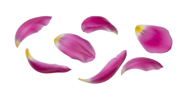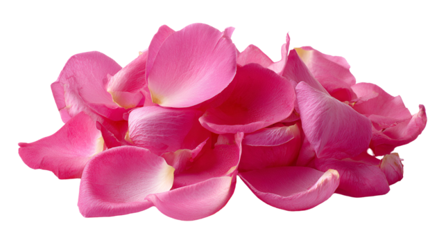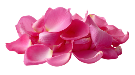 A beautiful arrangement of pink rose petals and a closed rosebud on a clean white background. the delicate textures and colors. ideal for floral-themed designs or romantic contexts