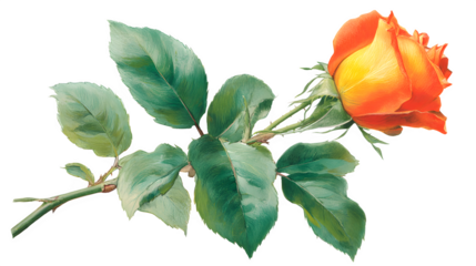 Beautiful red rosebud on green stem isolated on transparent background ready for easy composition