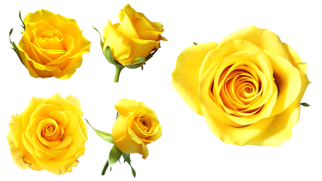 high quality image of four vibrant yellow roses isolated on white background PNG, ai generated
