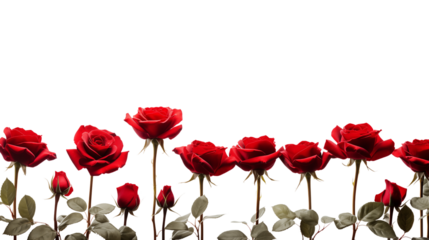 variety of red roses on transparent background in different angles and stages of blooming isolated on transparent background