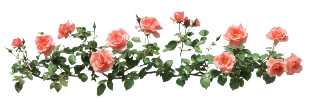 Digital pink roses with green leaves on transparent background