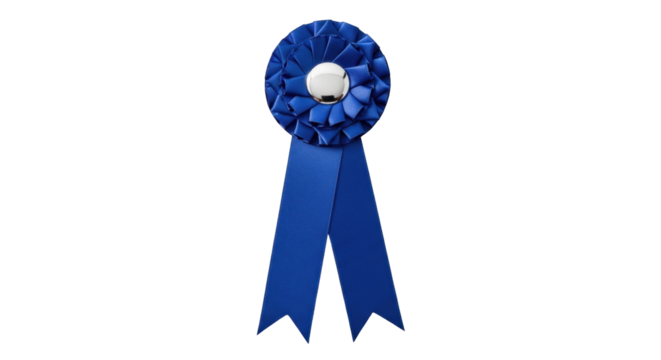 Isolated blue rosette award ribbon, perfect for celebrating achievements and recognizing honors