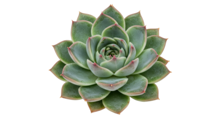 Echeveria succulent isolated on transparent background, green rosette plant with red tips for botanical design