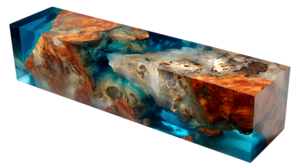 Stabilized wood furniture leg, vibrant resin infill, polished finish, isolated on Transparent background