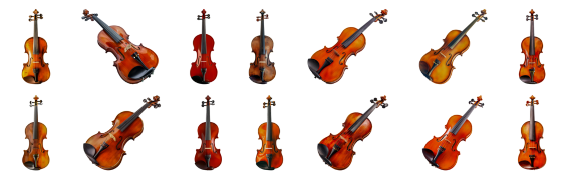 Elegant collection of violins cut out png on transparent background