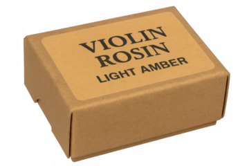 Light amber violin rosin in cardboard box on transparent background