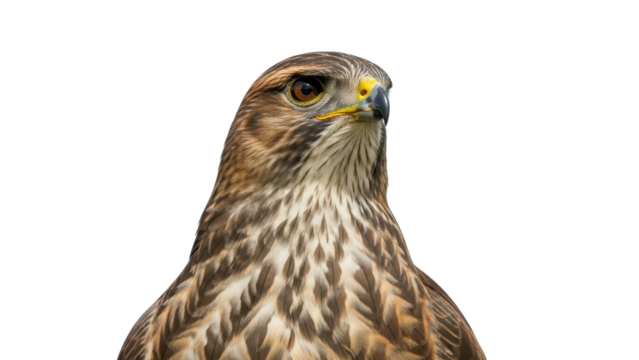 Isolated close-up portrait of a majestic brown hawk with yellow beak isolated PNG with Transparent Background