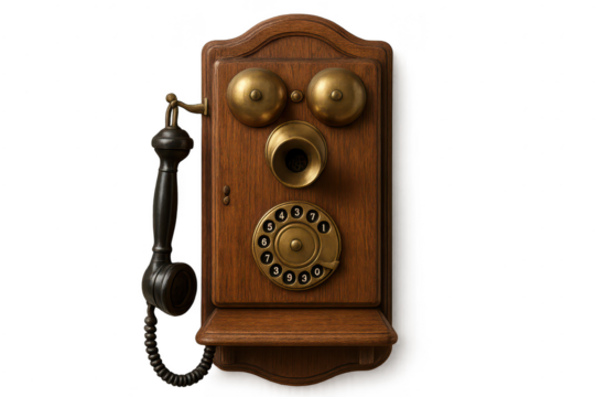 Antique Wall Phone with transparent background, Rotary Dial Telephone