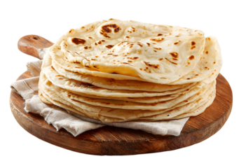Soft Stack of Freshly Cooked Flatbreads on a Rustic Plate | Chapati isolated on a transparent background | Roti isolated on a transparent background